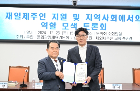 [뉴스서울] 제주특별자치도의회 문화관광체육위원회 강철남 의원(더불어민주당, 연동을)은 12월 26일 15시에 제주특별자치도의회 소회의실에서 재외제주인교류연구원과 공동으로 주관하여 “재일제주인 지원 및 지역사회에서의 역할 모색”이란 주제로 토론회를 개최하였다.