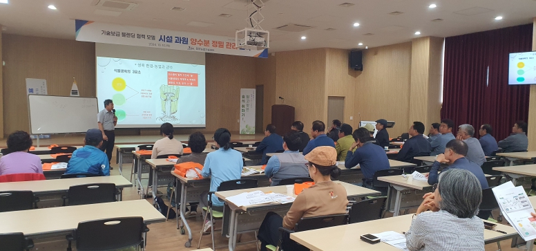 주요 내용으로는 △과다한 물 사용에 따른 작물 생육 저하 및 물 부족 문제 △효율적인 관수 방법 △비료 과다 사용에 따른 토양오염 문제 △관비재배를 통한 비료 사용량 절감 방법 등을 다뤘으며, 해외 및 국내의 이용 사례와 질의응답 시간도 마련돼 교육 내용을 효과적으로 전달할 수 있었다.