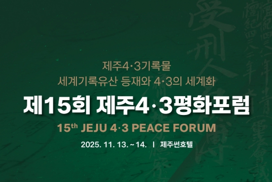 제주4·3평화재단은 11월 13일부터 14일까지 제주 썬호텔에서 '제주4・3 기록물 세계기록유산 등재와 4・3의 세계화'를 주제로 ‘제15회 제주4・3평화포럼’을 개최한다고 밝혔다.
