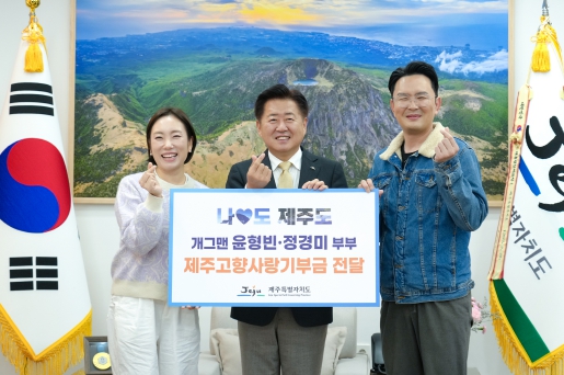 오영훈 제주도지사는 집무실에서 이들을 만나 제주 고향사랑기부 동참에 감사를 표하고, “두 분의 뜻을 담아 제주의 가치를 보전하는 사업에 소중히 사용하겠다”고 말했다.