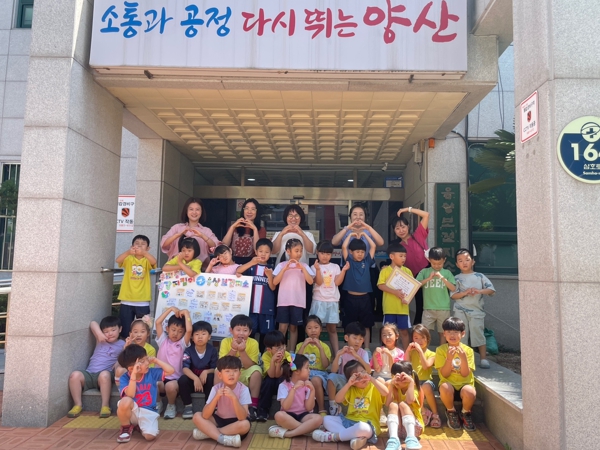 [뉴스서울] 지난 28일 웅상보건지소에 무지개유치원 하얀반 친구들이 깜짝 방문했다.