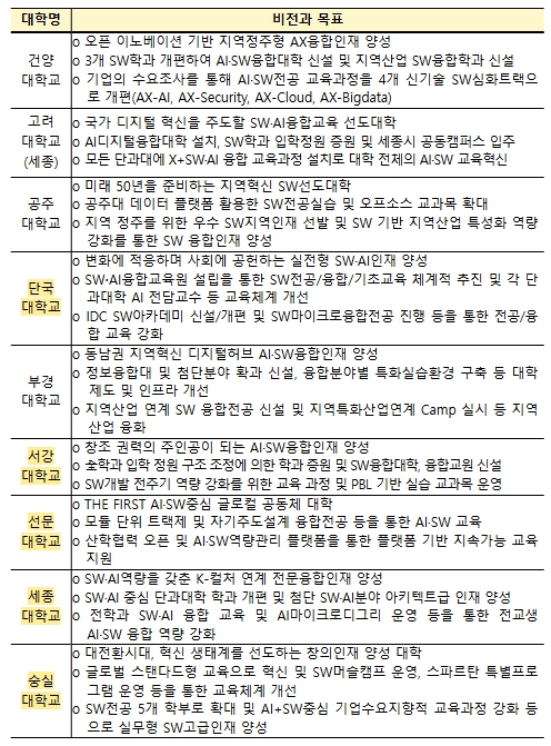 ▲ 2024년 신규 선정 SW중심대학의 비전과 목표 |