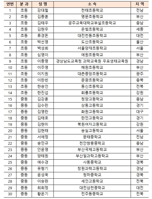 ▲ 2024년 올해의 과학교사상 수상자 명단 |