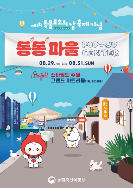 [뉴스서울] 농림축산식품부는 유실·유기동물의 입양 활성화를 위해 지자체 동물보호센터의 입양 대상 동물을 소개하는 팝업 행사를 8월 29일부터 8월 31일까지 개최한다.