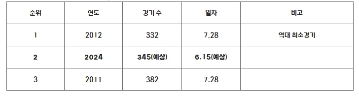▲ 역대 500만 관중 돌파 최소 경기 수 순위 |