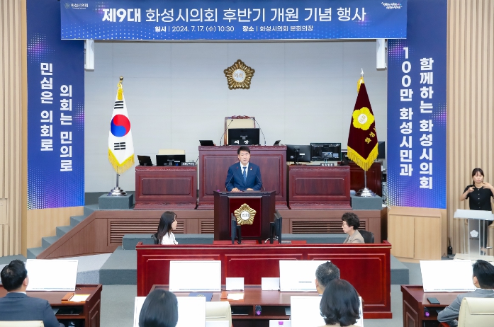 개원 행사는 화성 아리셀 공장 화재사고 수습과 추모에 따라 간소화로 진행됐으며, 의원 선서, 화성시의회의원 윤리강령 낭독, 제9대 화성시의회 후반기 기념 영상 상영이 있었다.