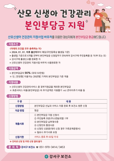 ▲ 부산 강서구, 산모·신생아 건강관리 서비스 본인부담금 지원 |