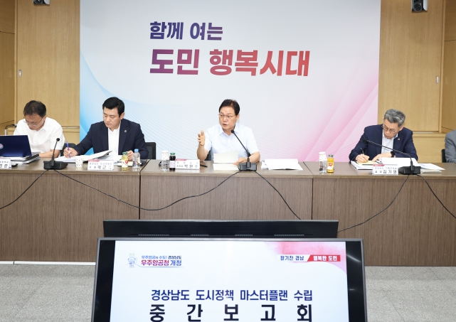 [뉴스서울] 경상남도는 5일 경남도청 도정회의실에서 박완수 도지사를 비롯한 도청 실국장과 시군 부단체장 및 전문가 자문위원 20여 명이 참석한 가운데 ‘경상남도 도시정책 마스터플랜’ 수립의 중간성과를 점검하기 위한 보고회를 개최했다.