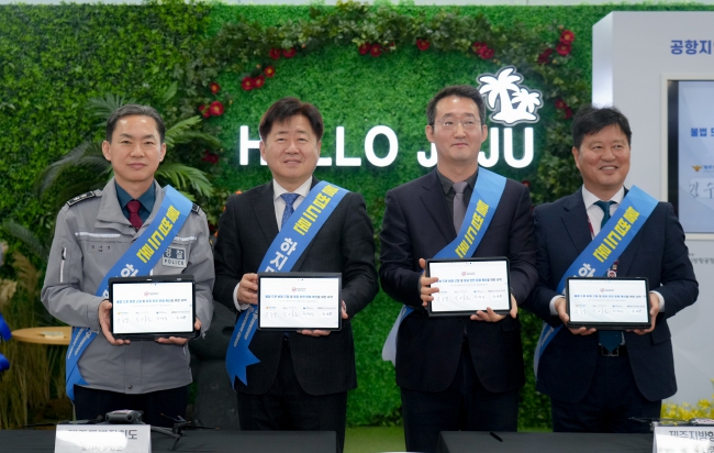 한명희 제주지방항공청장은 드론 관련 교육 강화와 탐지 장비 구축 투자 확대를, 김수영 제주경찰청장은 드론 테러 방지와 항공 안전 확보를, 장세환 제주공항장은 불법 드론 근절 홍보와 항공기 안전 운항 관리를 각각 약속했다.