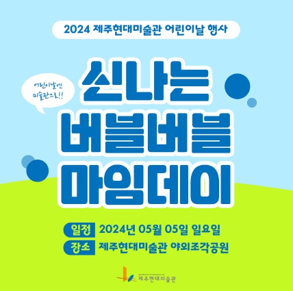 제주현대미술관은 오전 11시부터 야외조각공원에서 이경식 마임이스트의 마임 퍼포먼스와 음악극 배우들의 버스킹 공연이 어우러지는 ‘신나는 버블버블 마임데이’를 개최한다.