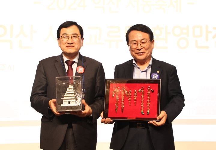 정헌율 익산시장은 답사를 통해 “경주와 자매도시의 인연을 맺은 후 다양한 분야에서 도움을 주고 받았다”며 “앞으로 두 도시가 동서 화합으로 우정의 꽃을 피울 수 있도록 노력하겠다”고 화답했다.