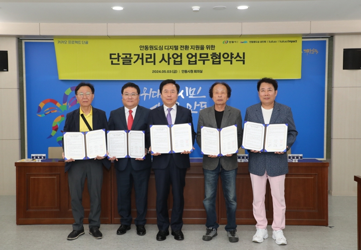 [뉴스서울] 안동시는 5월 3일 주식회사 카카오, 재단법인 카카오임팩트 및 남서상점가 상인회, 중앙문화의거리 상인회, 음식의거리 상인회와 함께 지역 상권 디지털 전환 지원을 위한 단골거리 사업에 대한 업무협약(MOU)을 체결했다고 밝혔다.