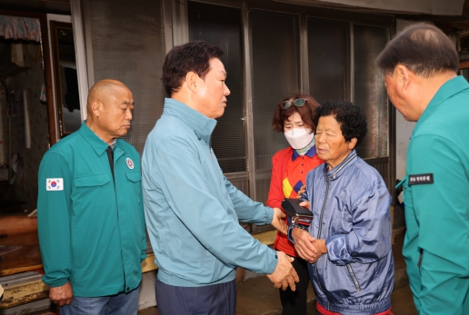▲ 박완수 경남도지사, 합천군 집중호우 침수피해 지역 긴급현장 점검 및 주민 위로 |