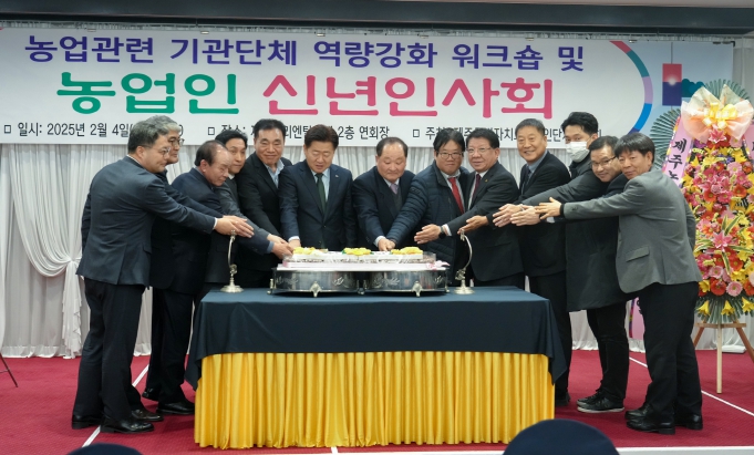 제주도농업인단체협의회가 주최한 이번 신년 인사회에는 오영훈 지사를 비롯해 도의회 의원, 농업인단체 관계자 등 100여 명이 참석해 제주 농업 정책 방향을 공유하고, 발전을 위한 새로운 각오를 다졌다.