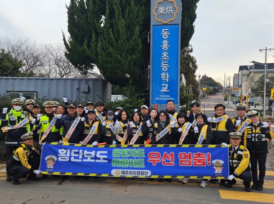 [뉴스서울] 제주자치경찰단 서귀포지역경찰대는 6일 동홍초등학교 어린이보호구역에서 등하굣길 어린이 보행안전 강화를 위한 교통안전 캠페인을 진행했다.