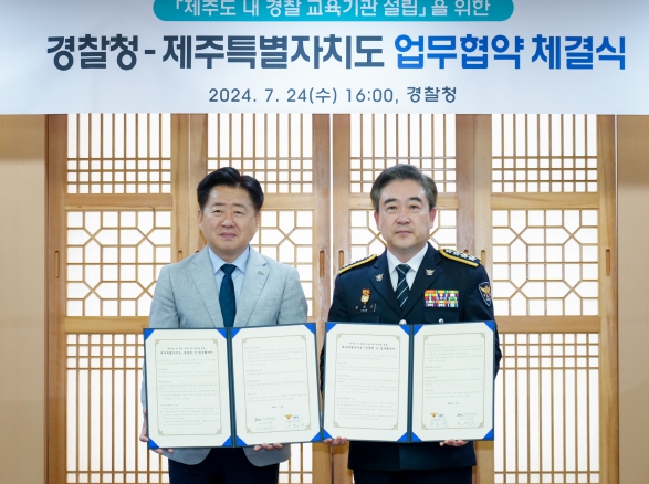 [뉴스서울] 제주특별자치도와 경찰청은 24일 오후 4시 경찰청 본부 대회의실에서 제주도 내 경찰 교육기관 설립 추진을 위한 상호 협력 업무협약을 체결했다.