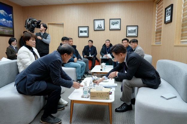 오영훈 지사는 이날 서귀포집무실을 방문해 화순 곶자왈 생태탐방로 정비, 법환초등학교 통학로 안전 확보, 올레7코스 ‘돔베낭길’ 해안가 계단 개방 등 3건의 민원을 청취하고 해결방안을 논의했다.