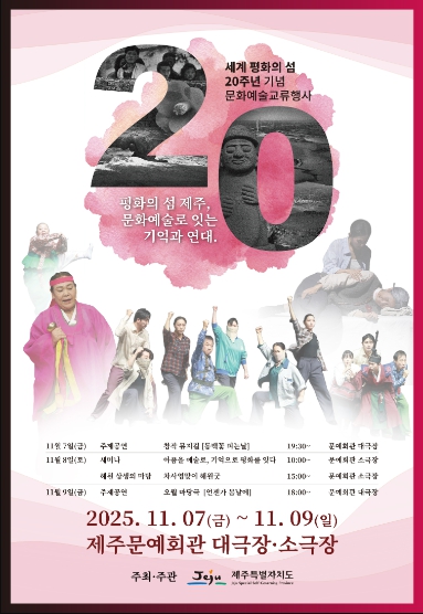 [뉴스서울] 제주특별자치도는 세계평화의 섬 20주년을 기념해 ‘평화의 섬 제주, 문화예술로 잇는 기억과 연대' 주제로 7일부터 9일까지 3일간 제주문예회관에서 문화예술 교류 행사를 개최한다.