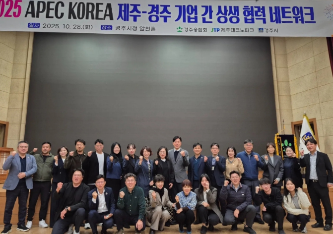 [뉴스서울] 제주테크노파크(원장 지영흔, 제주TP)는 지난 28일 경상북도 경주시에서 열린‘2025 APEC(아시아태평양경제협력체)’ 연계 행사에서 경주시 및 사단법인 중소기업융합대구경북연합회 경주융합회(회장 김상헌)와 함께 제주·경주 기업 간 상생 협력 네트워크 회의를 개최했다고 3일 밝혔다.