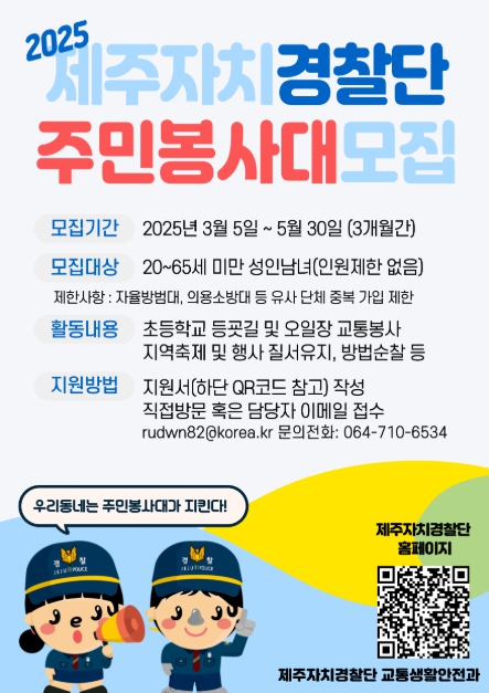 ▲ 제주자치경찰단, 우리 동네 지킴이 ‘주민봉사대원’ 신규 모집 |