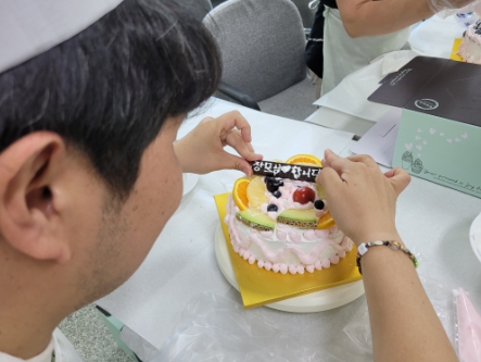 참가 직원들은 스펀지케이크에 생크림을 바르고 생과일로 장식하는 등 케이크 제작의 전 과정을 함께 체험했다. 특히 가족에 대한 사랑의 마음을 케이크에 글씨로 새기는 시간을 가져 의미를 더했다.