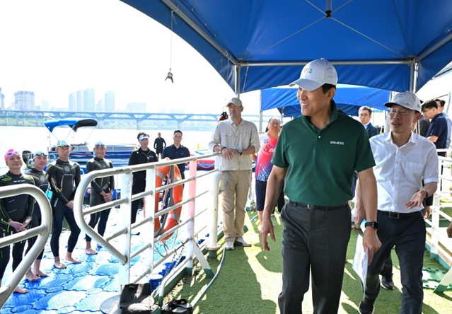 이어, 시민들이 안심하고 축제에 참여할 수 있도록 한강 수질을 점검하는 시료 채취 시연을 참관하고, 직접 수상보트를 타고 이동해 잠실수중보 남단에서 출발해 북단까지 종단하는 상급자 코스(1km)도 확인했다.