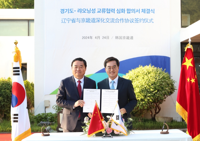 두 사람은 이날 ▲기업 비즈니스 환경 개선과 투자ㆍ기업협력 확대 ▲제조ㆍ과학기술혁신ㆍ현대농업 등 산업의 기업ㆍ기관 간 교류협력 강화 ▲문화ㆍ체육ㆍ관광ㆍ교육교류 확대 등의 내용을 담은 '경기도-랴오닝성 교류협력 심화 합의서'에 서명했다.