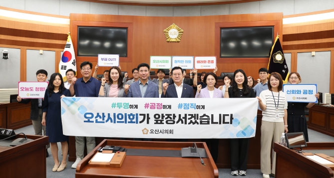 [뉴스서울] 오산시의회는 지난 23일 의회 본회장에서 반부패·청렴 이행을 위한 청렴 다짐식을 진행했다.