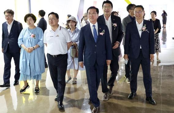 [뉴스서울] 대전시의회 조원휘 의장은 5일 대전시립미술관에서 열린 ‘제22회 이동훈미술상 시상식 및 전년도 수상작가 전’에 참석해 행사를 준비한 이동훈 기념사업회 변평섭 회장과 인사를 나누고 대전시립미술관 윤의향 관장을 비롯한 관계자들을 격려했다.