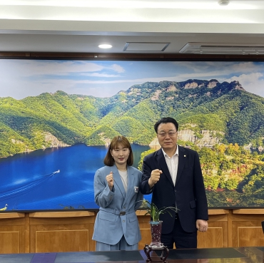 ▲ 정나은 선수(좌측)와 구복규 화순군수(우측) 기념 사진 |
