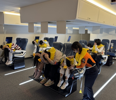 항공안전체험에서는 ▲항공기 이용 안전수칙 교육 ▲산소마스크 및 구명조끼 사용법 ▲항공 슬라이드를 통한 비상탈출 훈련까지 실제 항공기 사고 상황을 시뮬레이션으로 구성해 생생한 교육을 제공한다.