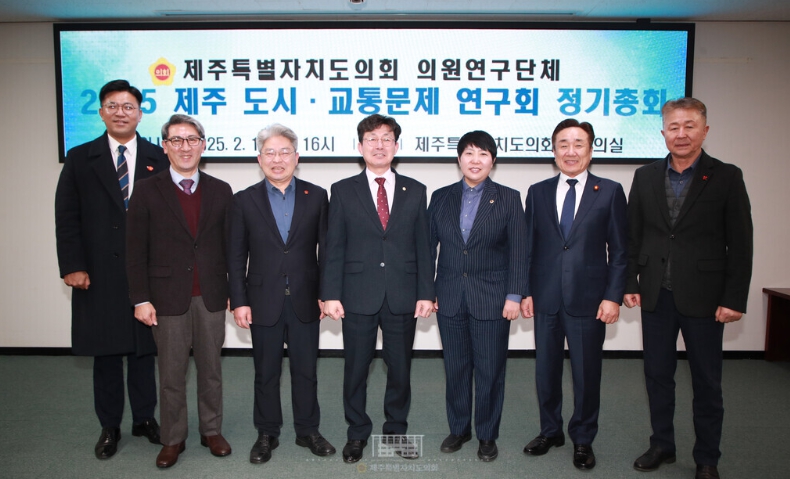 의원연구단체 '제주 도시·교통 문제 연구회'는 제12대 제주특별자치도의회 출범 이후 지난 2022년 8월 25일 창립총회를 갖고 현재 9명의 의원이 활동하고 있다. 이번 정기총회에서는 2025년도 예산과 연구활동 계획을 승인하고 사업을 추진할 예정이다.