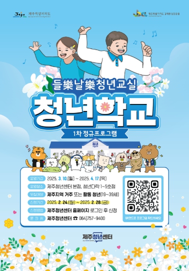 [뉴스서울] 제주특별자치도와 제주청년센터(센터장 이성재)가 2025년 청년학교 1차 정규프로그램 참여자를 2월 24일부터 2월 28일까지 모집한다. 2025년 청년학교 1차 정규프로그램은 지난 1월 사전 수요 조사를 통해 제주 청년이 필요로 하는 취미·여가, 지식·기술 교육 중심으로 총 18개 강좌로 구성됐다.
