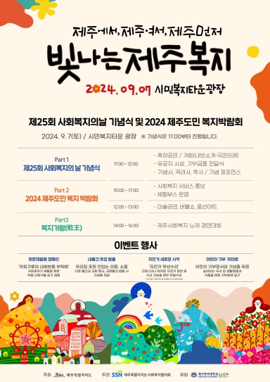 [뉴스서울] 제주특별자치도는 7일 오전 11시 제주시민복지타운 광장에서 ‘제25회 사회복지의 날 기념행사 및 나눔대축제’를 개최한다.