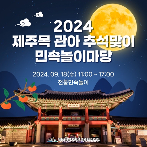 추석맞이 민속놀이마당에서는 전통 민속놀이 10종과 번외참여 게임, 체험 프로그램이 진행된다. 부대행사로 제주목 관아 곳곳을 돌아다니며 풀어야 하는 십자말풀이 퀴즈와 사회관계망(SNS) 팔로잉이 마련됐다. 미션 수행시 선착순으로 선물을 증정한다.