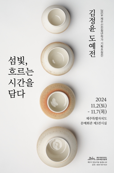 [뉴스서울] 제주문화예술진흥원이 2024 제주신진청년작가 기획초청전의 두 번째 전시로 김정윤 작가의 도예전 '섬빛, 흐르는 시간을 담다'’를 11월 2일부터 7일까지 문예회관 제3전시실에서 개최한다.