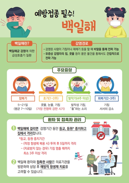 백일해는 예방접종대상 감염병으로 예방접종을 통해 예방할 수 있다.