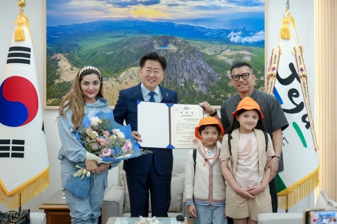 이날 아낭 가족은 제주도청이 운영하는 유튜브 채널 ‘빛나는 제주TV’와 인스타그램을 구독하고 팔로우하며, 제주도 공식 사회관계망(SNS) 홍보에도 적극 협력하겠다는 의지를 밝혔다.