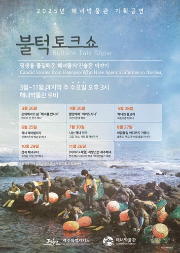 [뉴스서울] 제주특별자치도 해녀박물관은 3월부터 11월까지 매월 마지막 주 수요일 ‘문화가 있는 날’을 맞아 '해녀 불턱 토크쇼'를 개최한다.