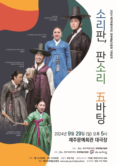 [뉴스서울] 제주특별자치도 문화예술진흥원은 오는 29일 오후 5시 제주문예회관 대극장에서 기획공연 ‘소리판, 판소리 五바탕’을 선보인다.