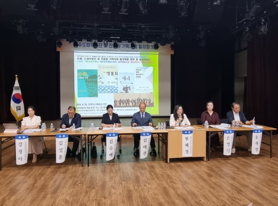 이어진 종합토론에서는 현혜경 제주연구원 부연구위원이 좌장을 맡아 진행했다. 강정아 추계예술대학교 외래교수, 김성훈 제주사진작가협회 부회장, 김수애 제주도서예문인화총연합회장, 손영신 제주도립예술단 운영위원(무용분과), 송재경 제주미술협회장 등 다양한 분야의 문화예술인들이 토론자로 참여해 심도 있는 의견을 제시했다.
