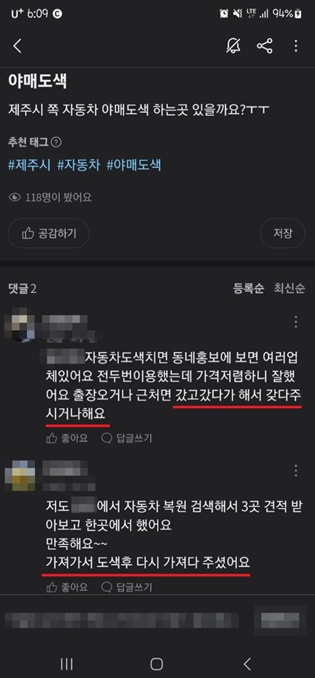 A업체는 중고거래 사이트를 통해 고객을 모집하고 고객이 있는 곳에서 차량을 인수한 후 작업장에서 정비하고 다시 고객에게 차량을 인계하는 수법을 사용했다.
