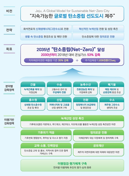 [뉴스서울] 제주특별자치도가 2030년 온실가스 53% 감축(2018년 대비)에 이어 2035년까지 탄소중립(Net-Zero) 사회를 실현하기 위한 ‘제1차 제주도 탄소중립·녹색성장 기본계획’을 수립하고 국제사회와 발맞춰 다각도의 정책을 펼치고 있다.