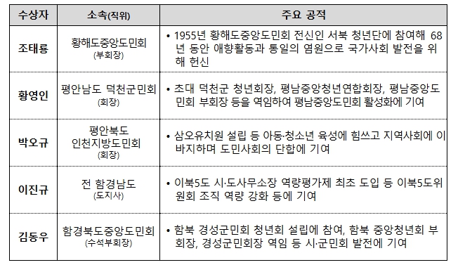 ▲ ‘국가사회발전 이북도민 유공’ 국민훈장 동백장(5명) |