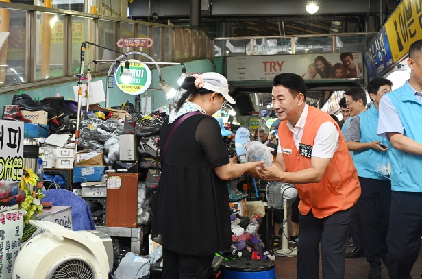 김동근 의정부시장, 제일시장 폭염 예방 물품 나눔행사 참여
