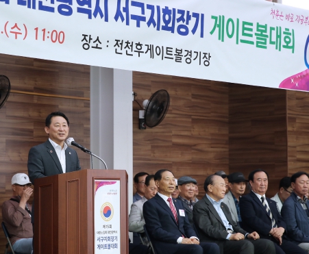 서철모 청장은 축사를 통해 “대회를 준비해 주신 서구노인지회와 서구 게이트볼협회 관계자분들의 노고에 감사드린다”라며 “게이트볼과 같은 스포츠를 통해 어르신들의 적극적인 외부 활동 참여로 신체적ㆍ정신적 건강관리를 하셨으면 한다”라고 말했다.