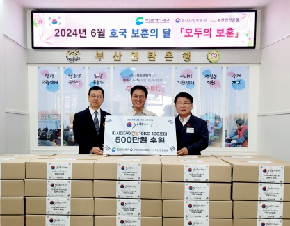 [뉴스서울] (사)부산연탄은행은 6월 ‘호국보훈의 달’을 맞아 지난 18일 국가를 위해 헌신한 보훈대상자 지원을 위해 부산 서구에 500만 원 상담의 유기농 백미 100포를 전달했다.