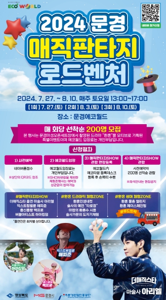 [뉴스서울] 문경시는 오는 7월 27일부터 8월 3일, 8월 10일 총 3회에 걸쳐 문화 콘텐츠 테마파크인 문경 에코월드에서 '2024 문경 매직판타지 로드벤처'를 개최한다.