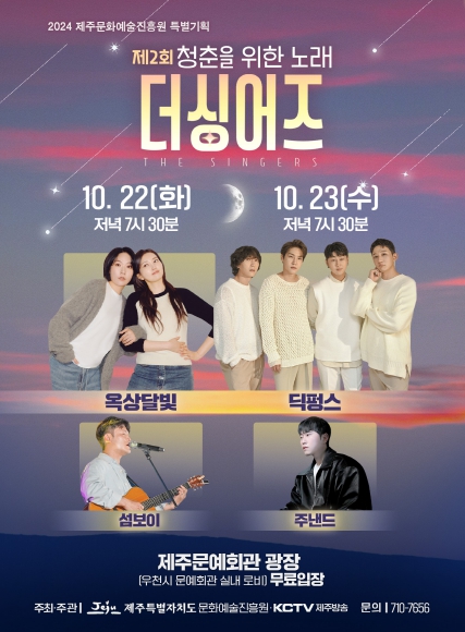 [뉴스서울] 제주문화예술진흥원이 KCTV제주방송과 공동 기획으로 제주문예회관 광장에서 ‘제2회 더 싱어즈 'The Singers'’ 야외음악회를 개최한다.