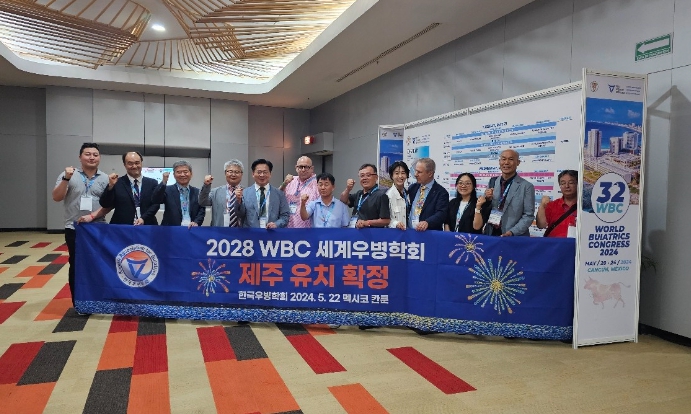 제주특별자치도는 20~24일 멕시코 칸쿤에서 열리는 2024년 세계우병학회에서 참가국 투표를 거쳐 2028년 학회의 제주 개최가 결정됐다고 밝혔다.